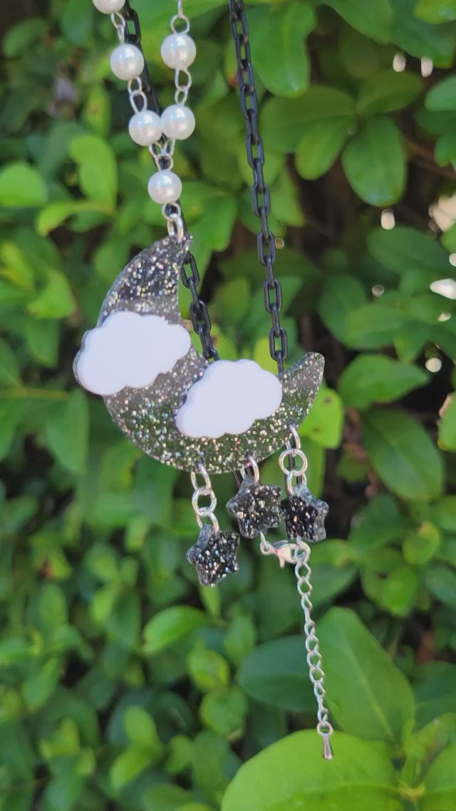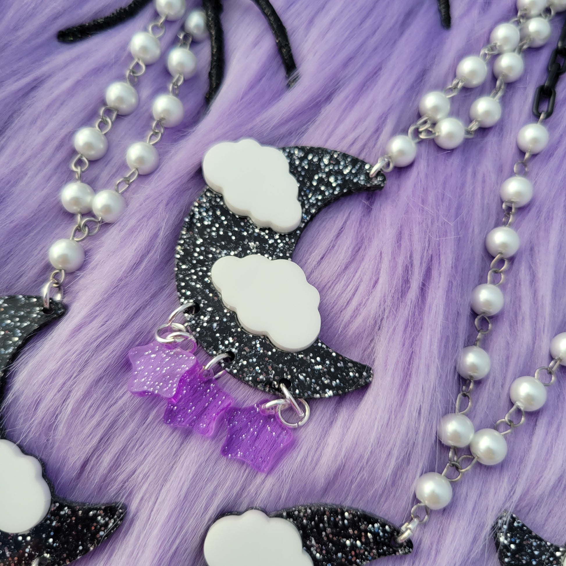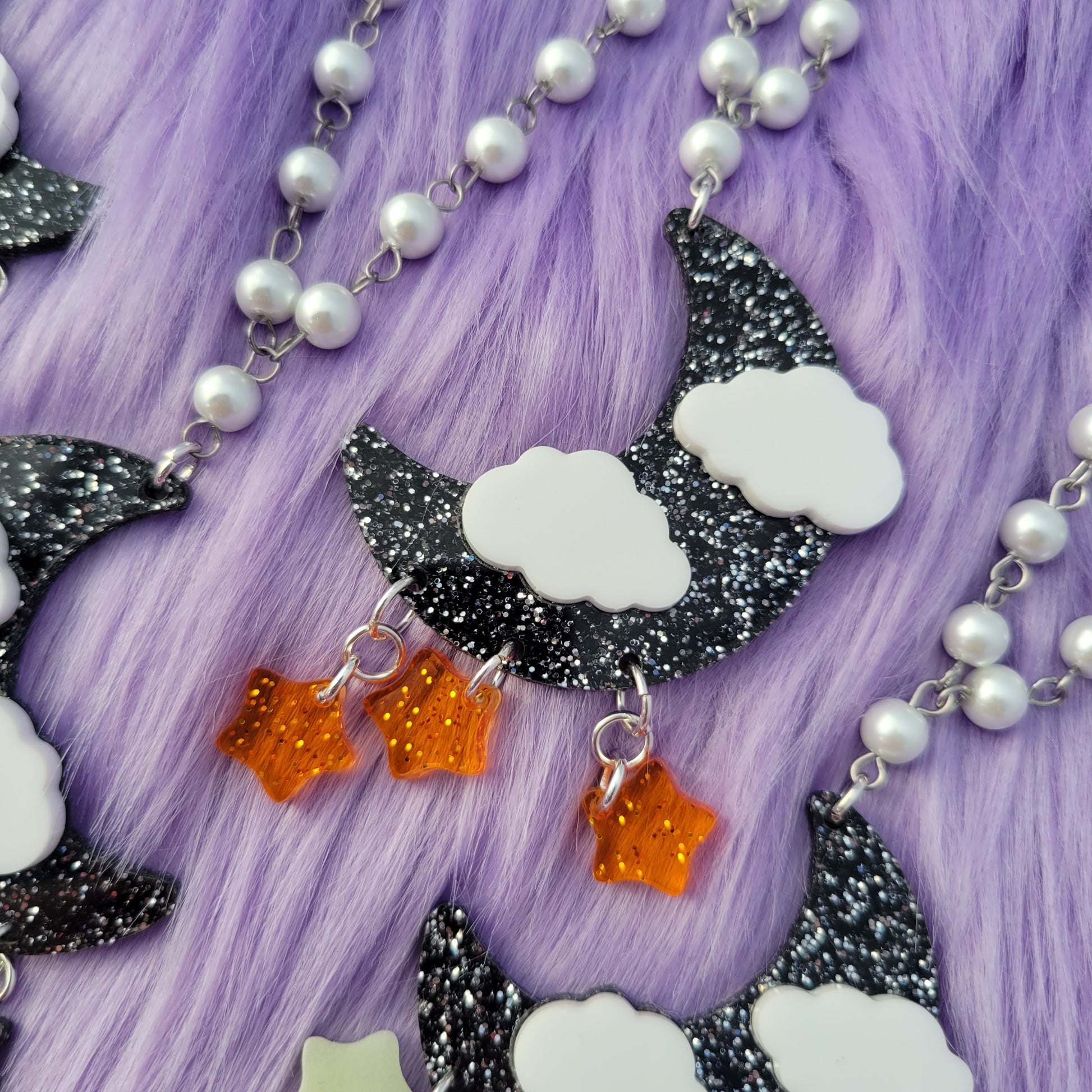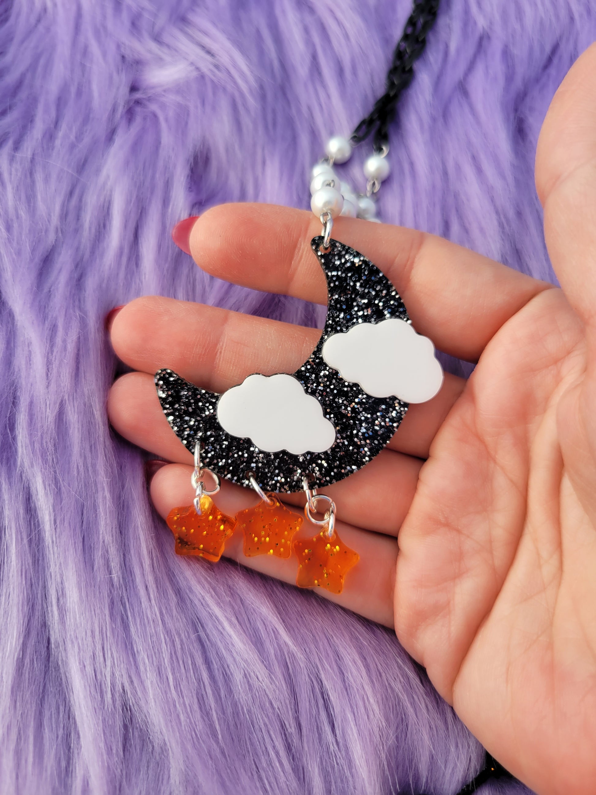 Black Moon Necklace | Gothic Lolita Necklace | Glitter Moon | Halloween Necklace | Goth Necklace