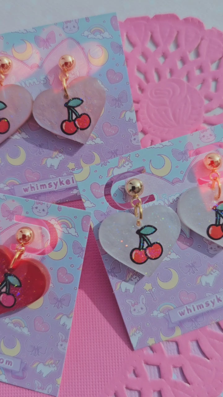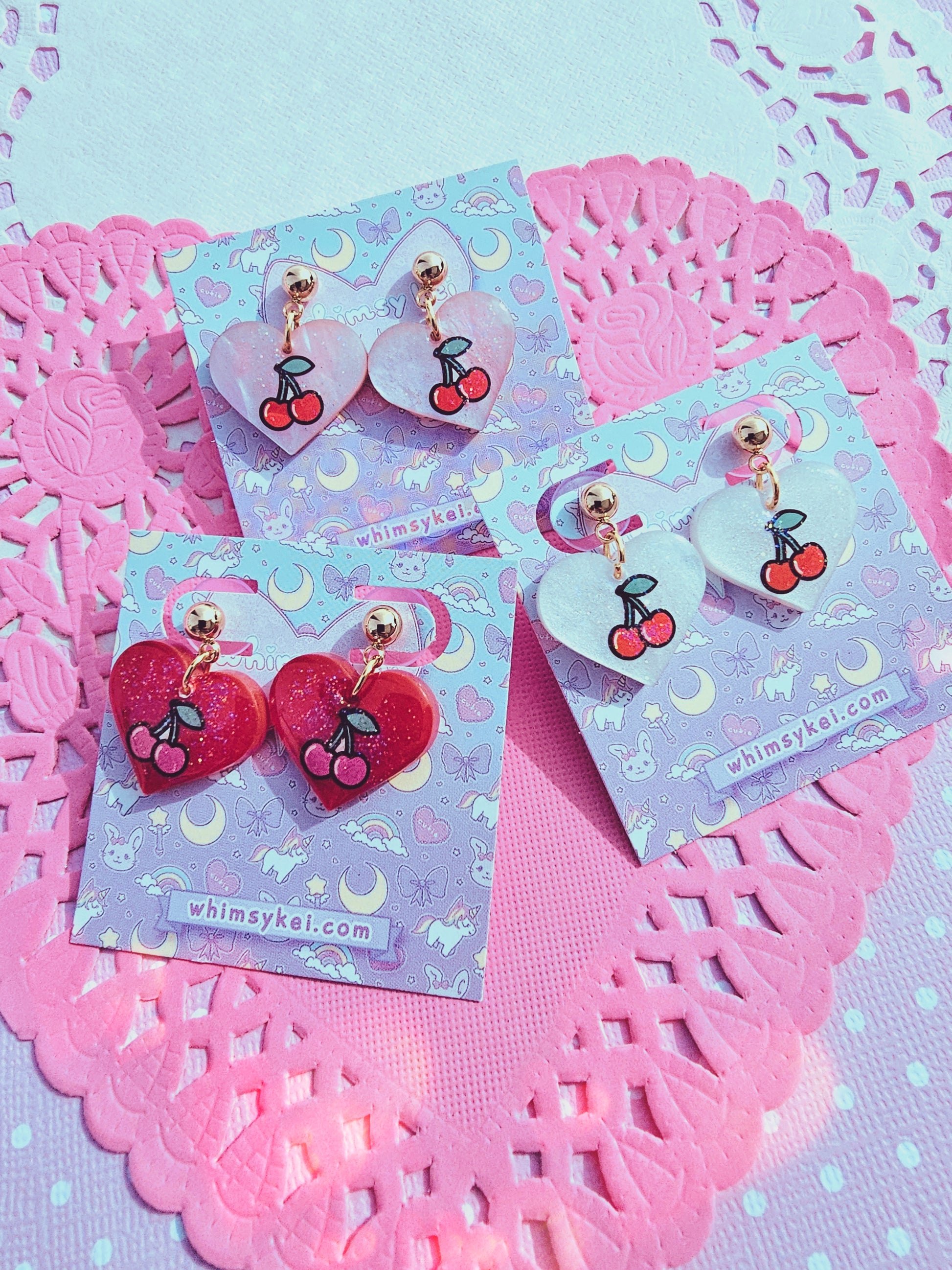 Cherry Heart Stud Earrings | Larme Kei Earrings | Girly Kei | Dolly Kei | Sweet Lolita Earrings