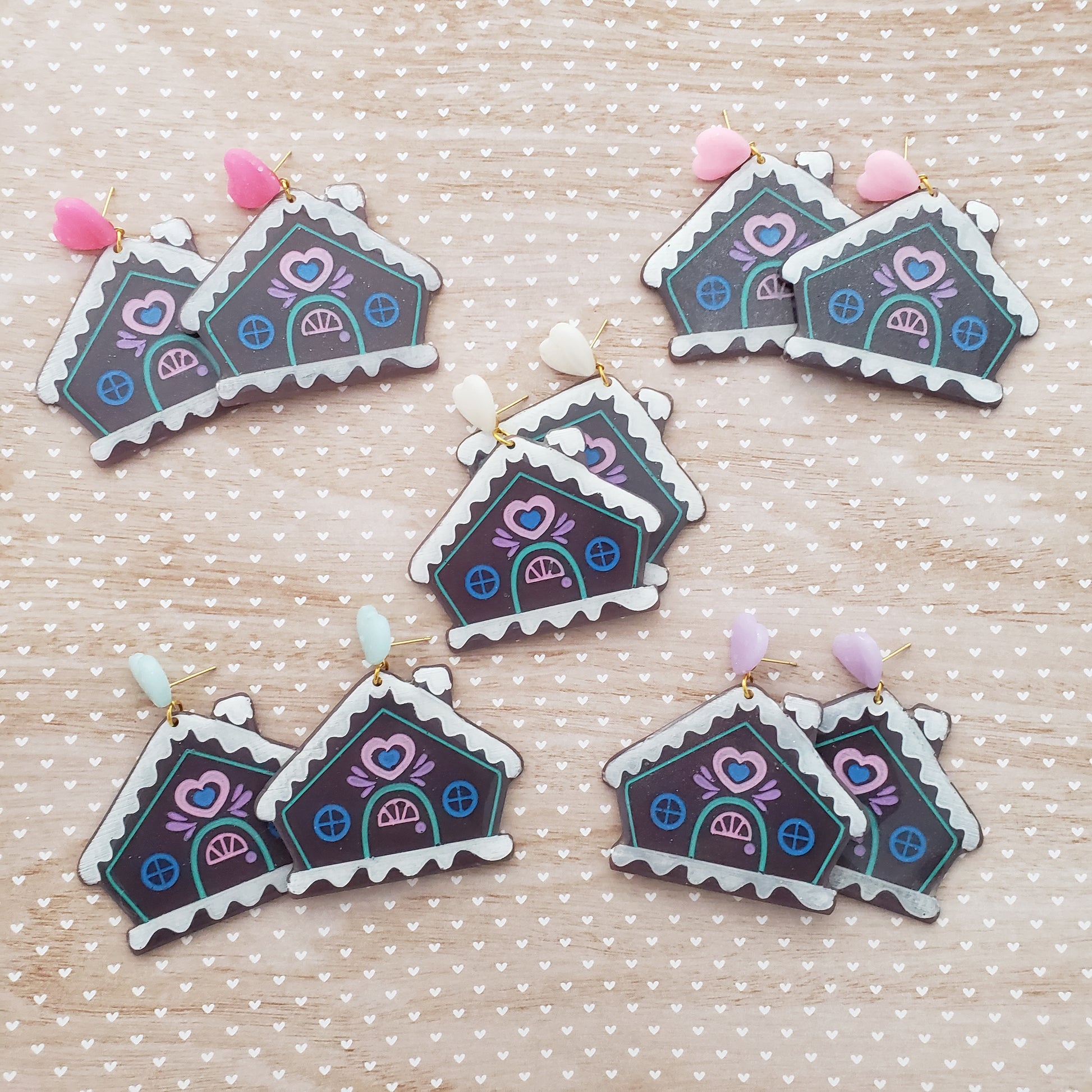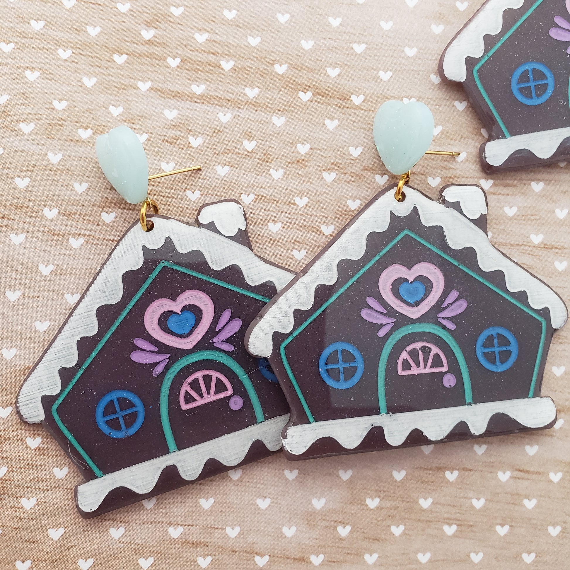 Gingerbread Earrings | Gingerbread House Earrings | Fake Cookie Earrings | Christmas Earrings | Sweet Lolita Earrings | Sweets Earrings | Christmas Jewelry