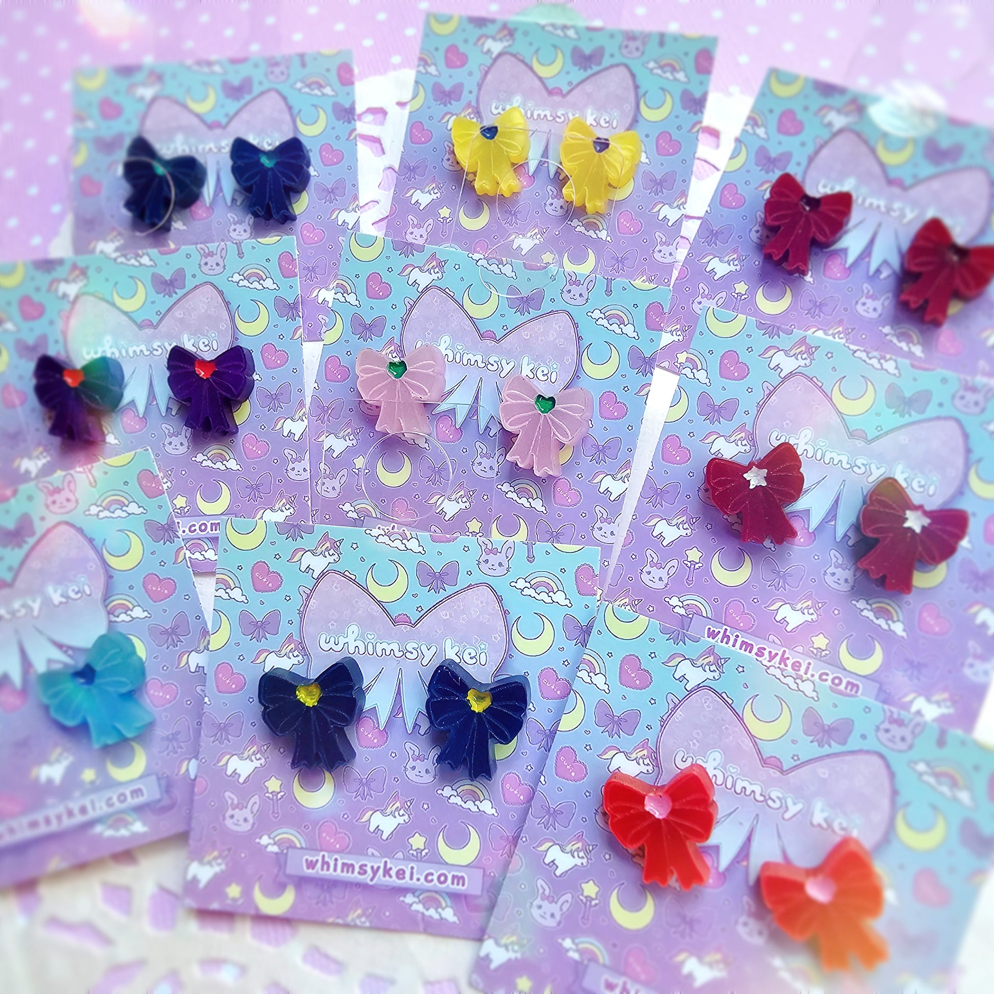 Tiny bows with painted hearts (or star) that color coordinate to each Sailor Scouts uniform bow.