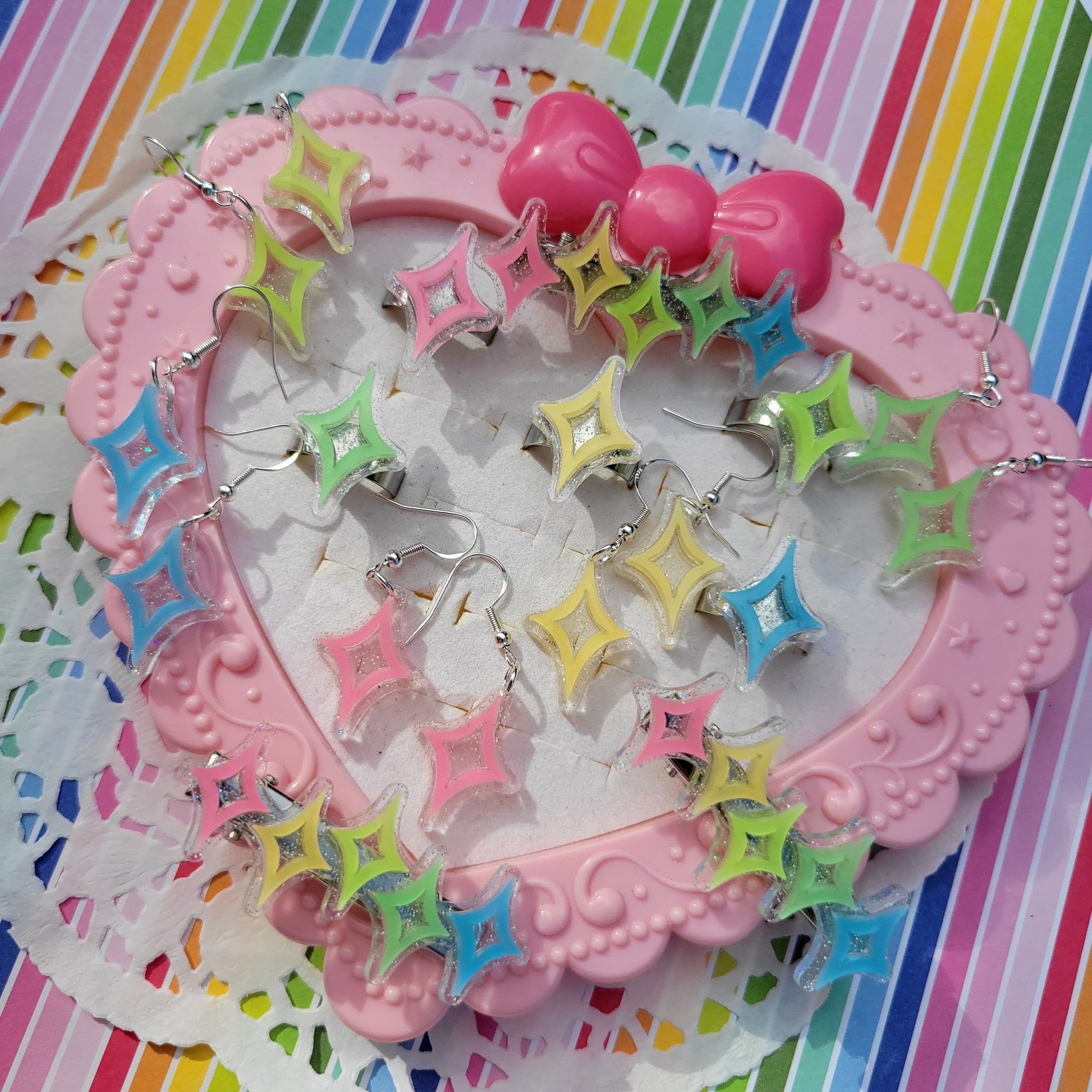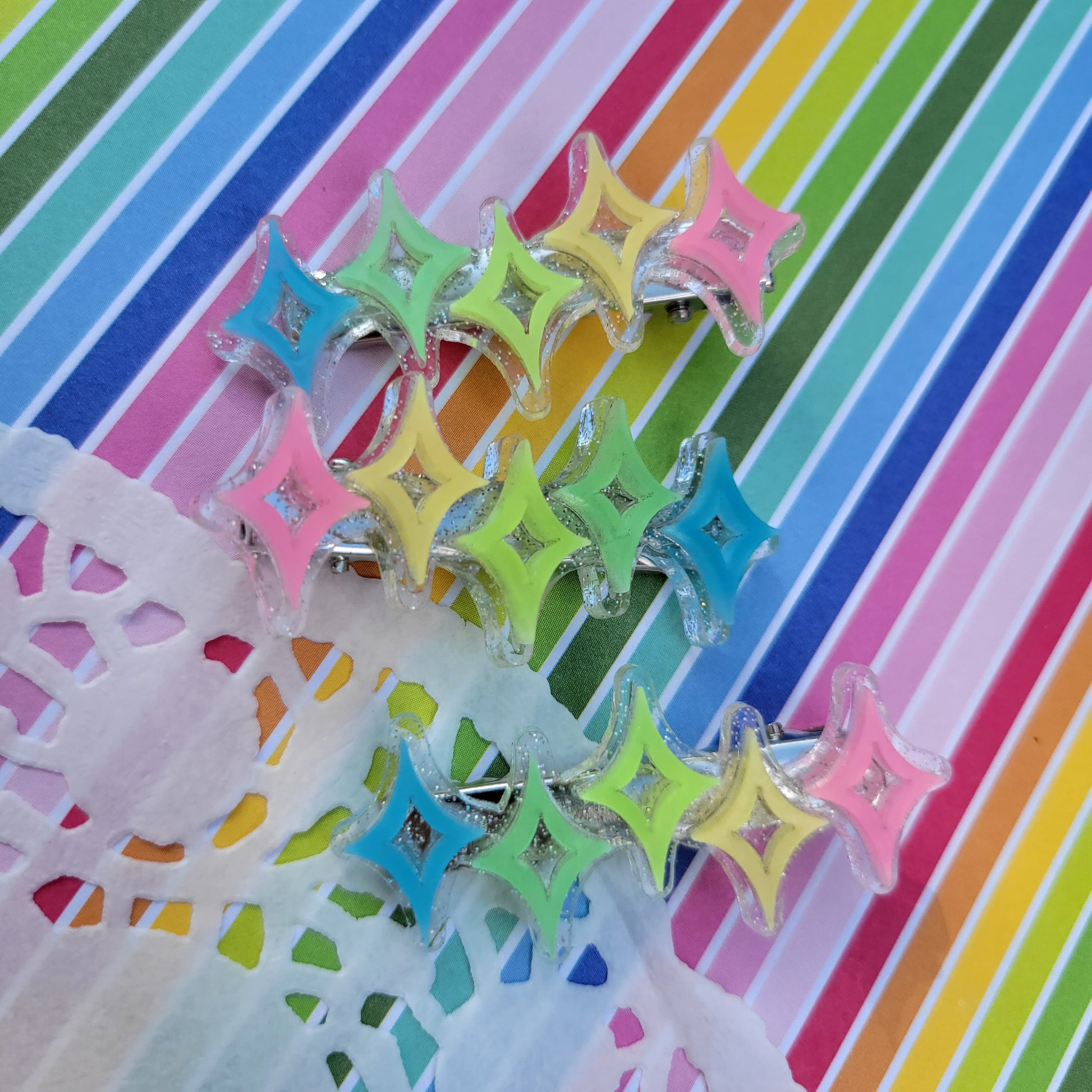 One of the best part about Magical Girls is their sparkly accessories! These gorgeous rainbow hairclips not only help you transform, but also glow in the dark!
