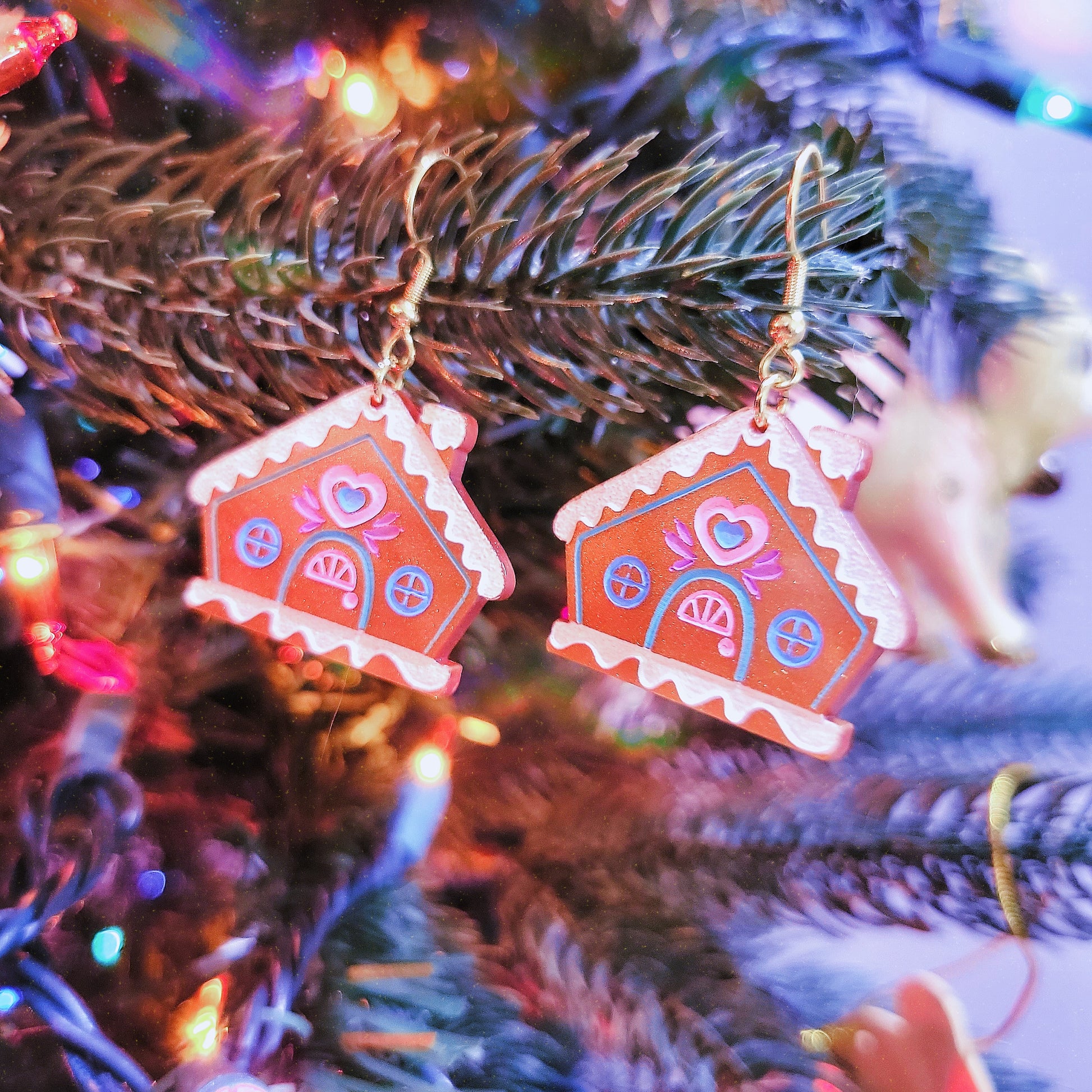 Mini Gingerbread Earrings | Gingerbread House Earrings | Fake Cookie Earrings | Christmas Earrings | Sweet Lolita Earrings | Sweets Earrings | Christmas Jewelry