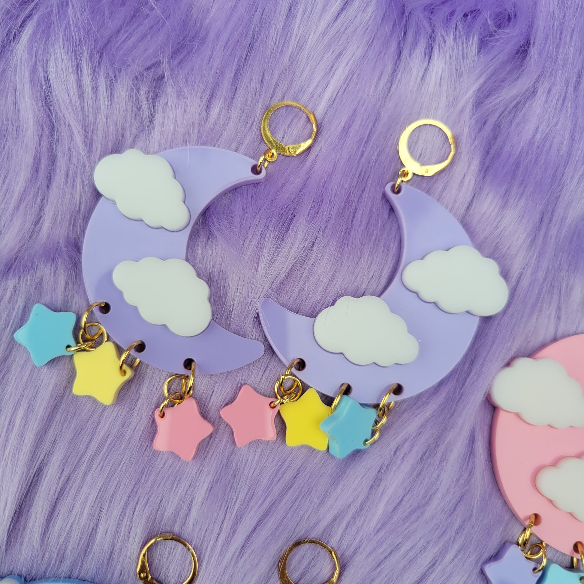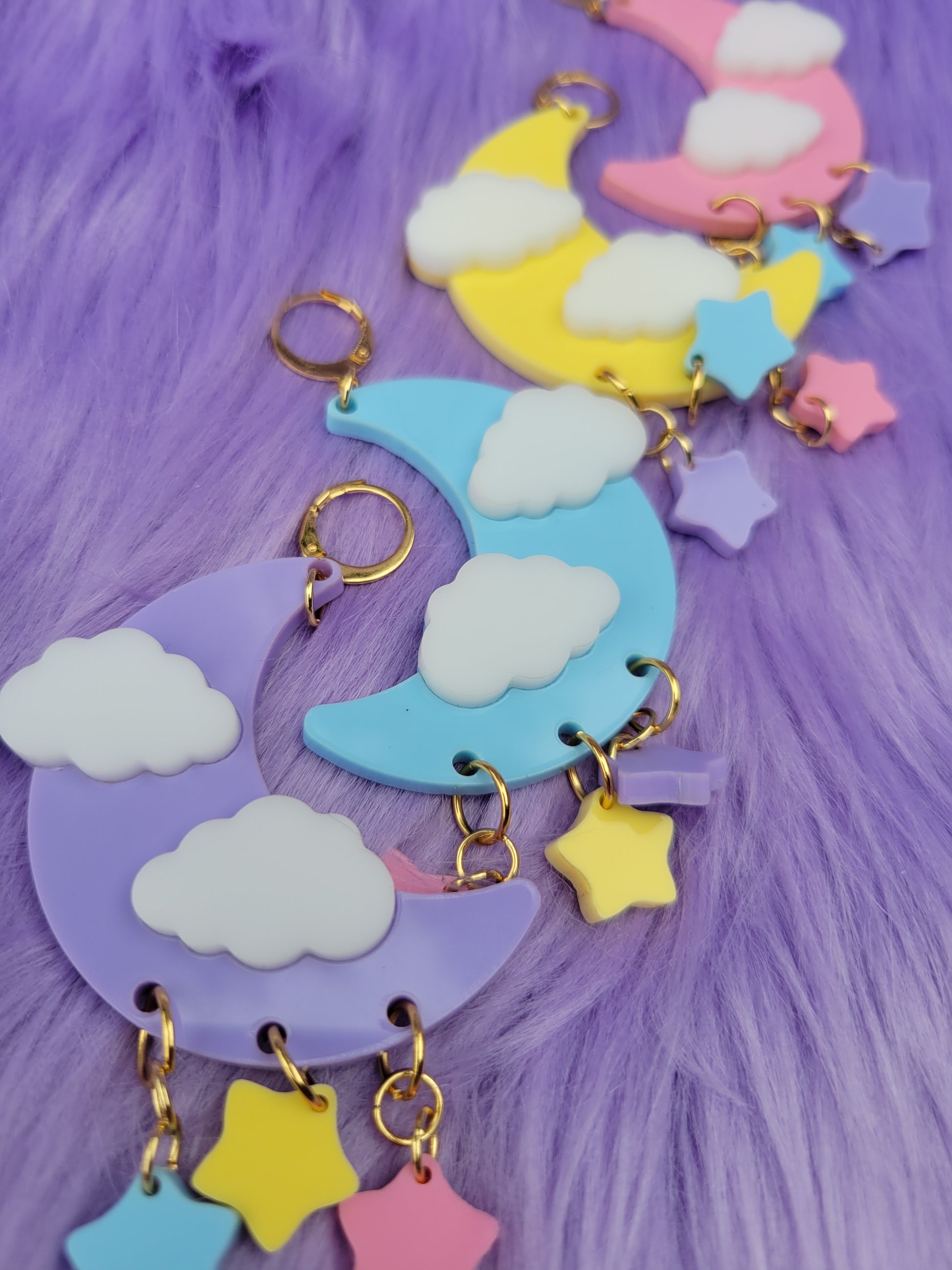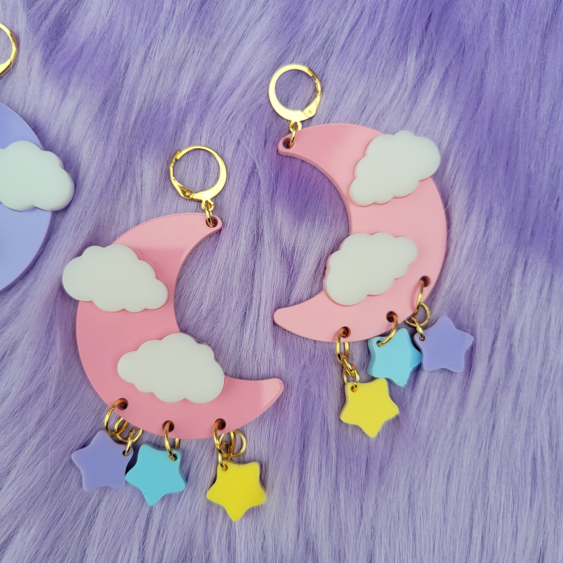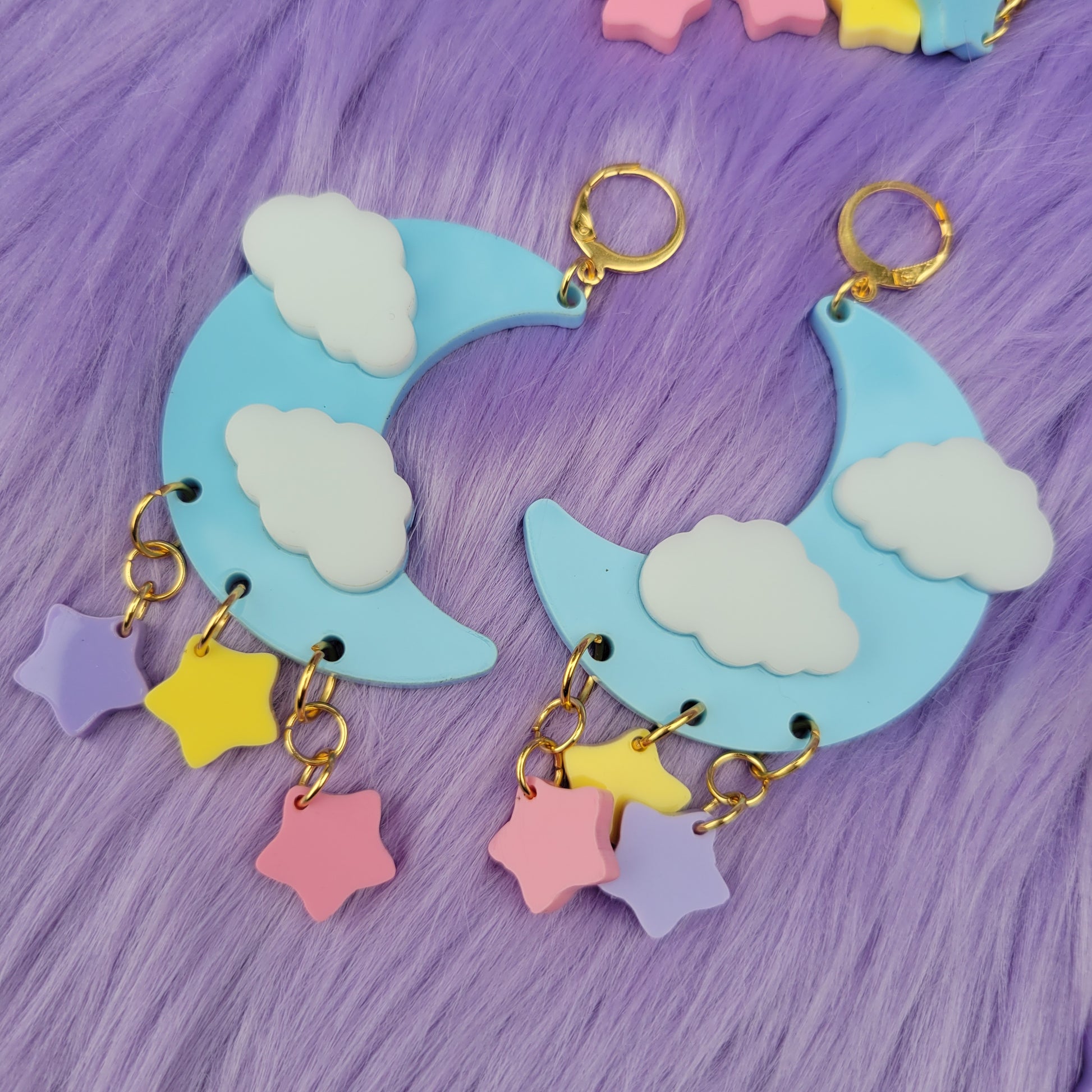Dreamy Moon Earrings | Pastel Moon | Fairy Kei Moon | Decora Kei Earrings | Sweet Lolita Earrings | Pastel Sky | Dreamy Sky