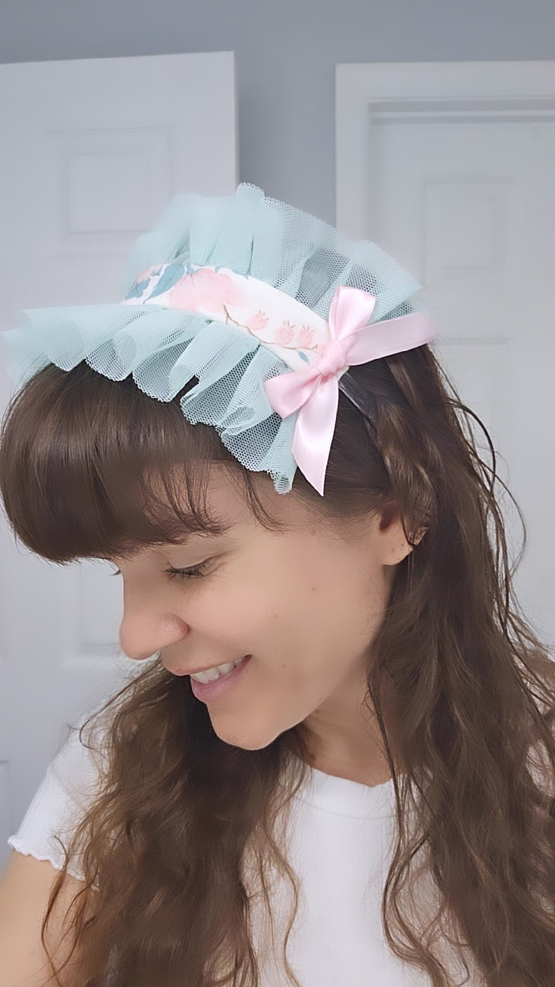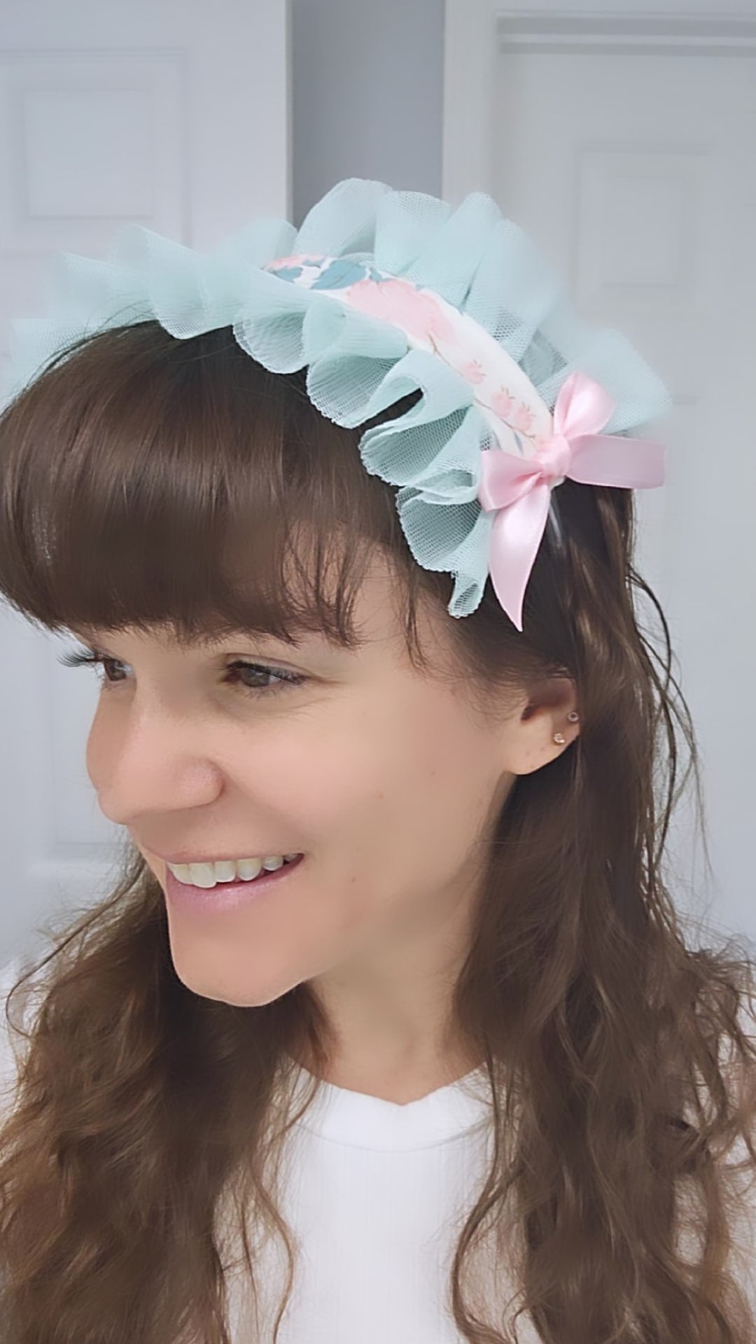 Floral Headband | Girly Headband | Sweet Lolita Headdress | Mint and Pink Headband