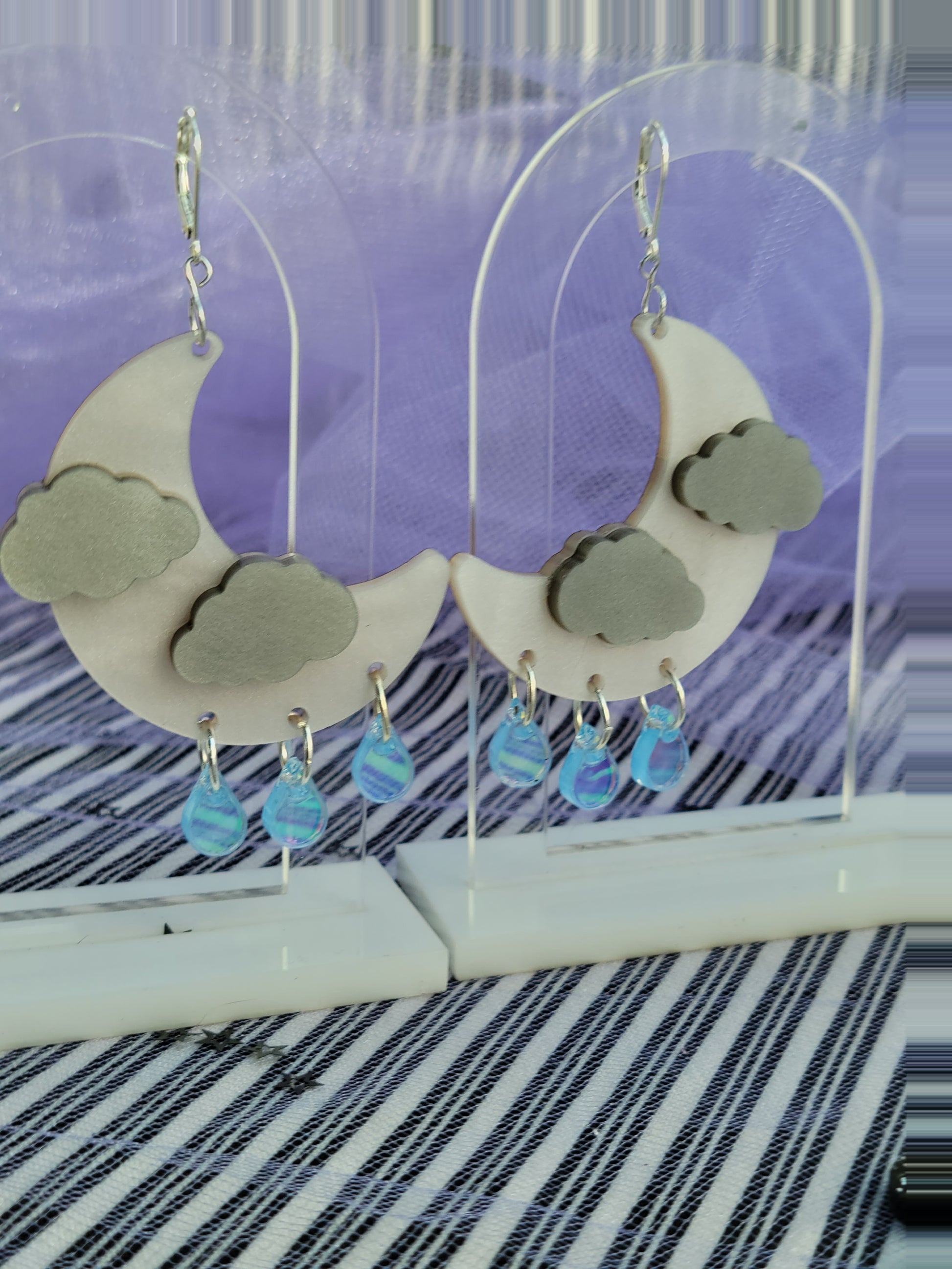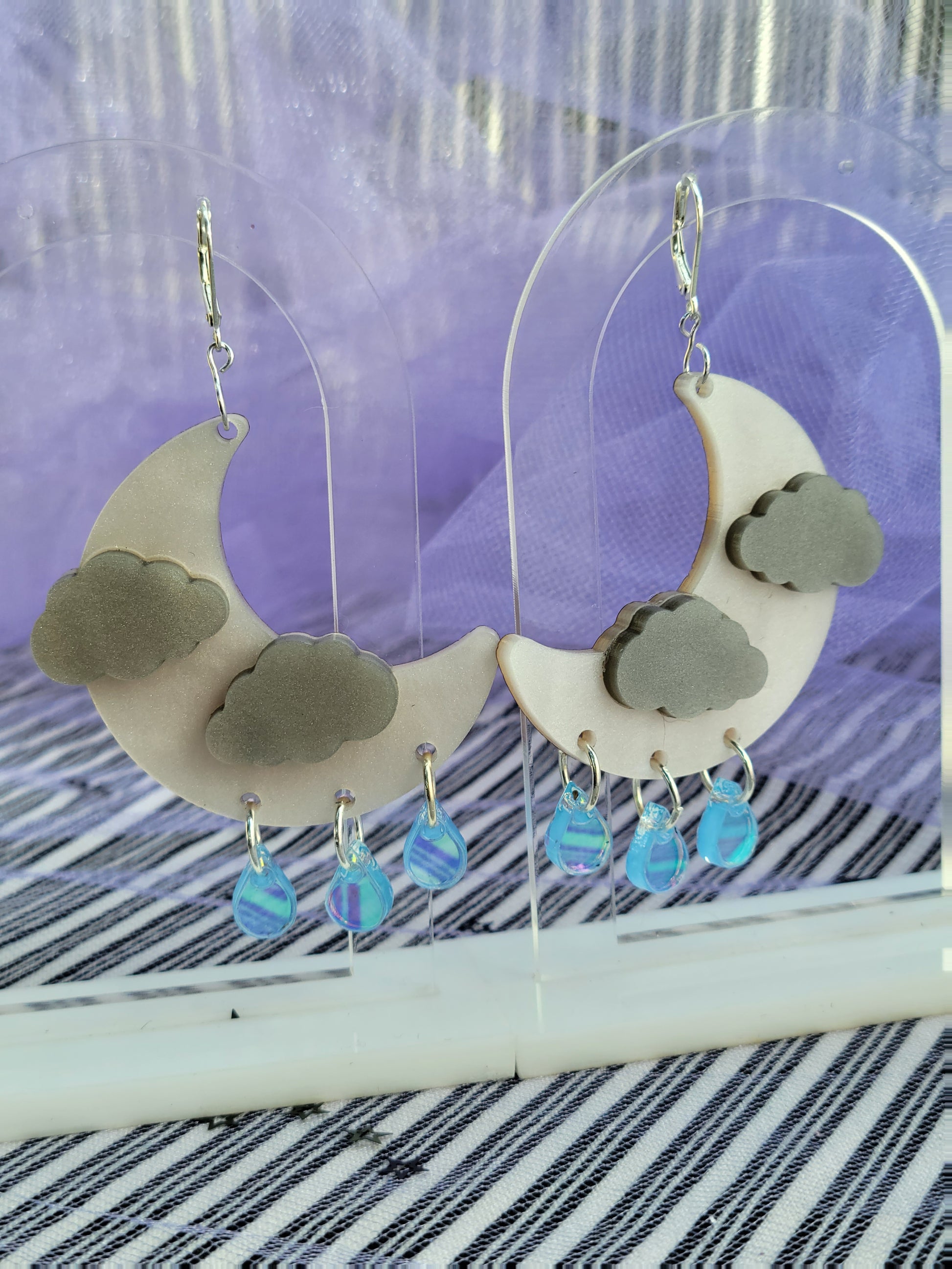 Rainy Moon Earrings | Rain Cloud Earrings | Summer Earrings | Moon Chandelier Earrings