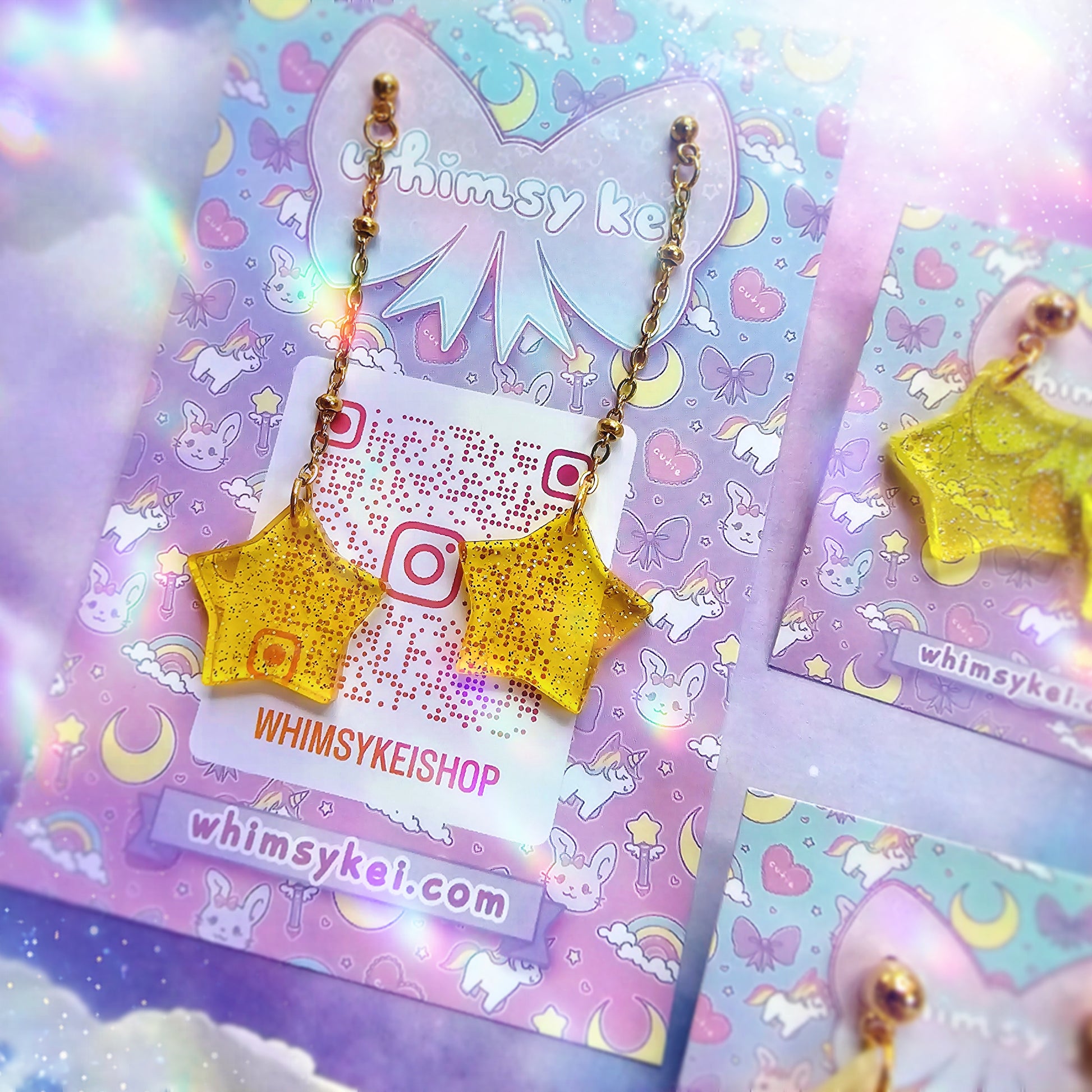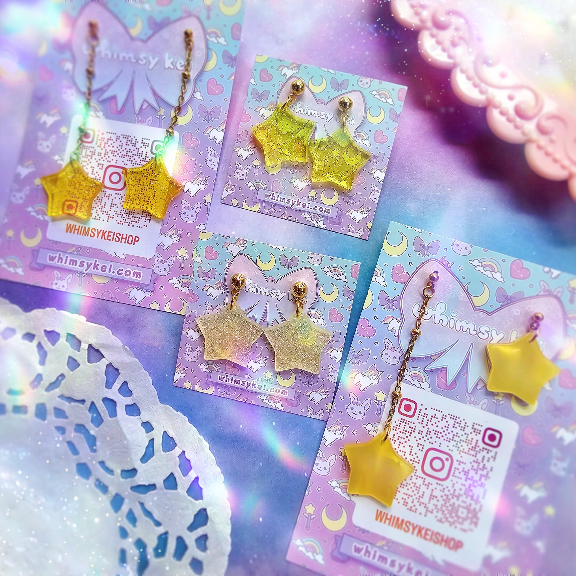 Sparkly Star Earrings | Yellow Star Studs | Mahou Kei Earrings | Fairy Kei